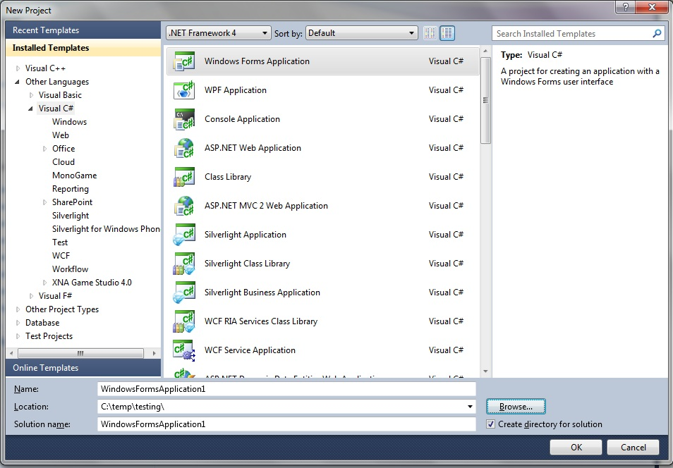 1. Launch Visual Studio 2010 or another version of Visual Studio. Select Visual C#, Select Windows Form Application.